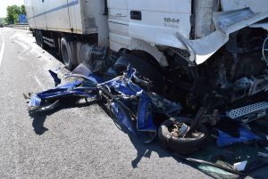 Un bărbat a fost proiectat prin parbriz din autoturismul pe care îl conducea, după ce mașina a intrat într-un autocamion.