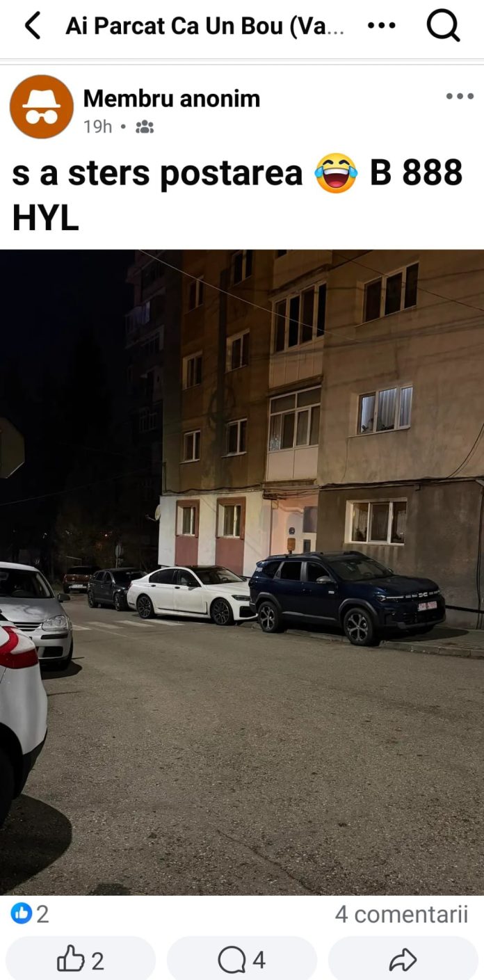 Cert rămâne însă ceea ce se vede clar în fotografie: trotuarul este blocat, trecerea de pietoni devine inutilizabilă, iar accesul într o scară de bloc este îngreunat. Restul sunt discuții, interpretări și ironii, generate de o imagine care a ajuns, din nou, în spațiul public.