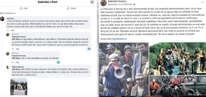 Această formulare nu este ambiguă și nu poate fi interpretată ca metaforă. Ea face trimitere directă la un episod istoric marcat de violență organizată, victime, distrugeri și intimidarea societății civile — evenimente care au produs doar consecințe negative pentru Valea Jiului. Gabriela Feceoru este chiar ”dojenită” de un cetățean care-i comentează la postare și-i atrage atenția asupra derapajului. Tânăra este și mai vehementă și-și reafirmă mesajul instigator, ba chiar mai abitir.