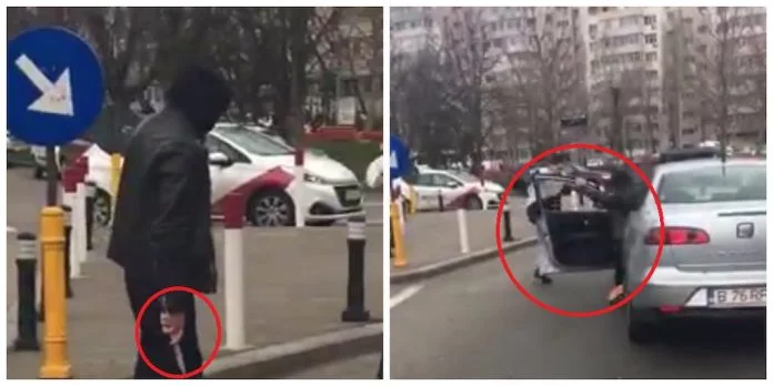 Celălalt bărbat nu pare impresionat de arma albă și îl împroașcă pe cuțitar cu spray paralizant. Cel care ține cuțitul în mână dă înapoi și intră în cele din urmă în autoturism.